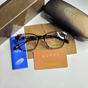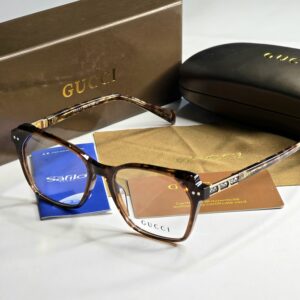 Introducing the Luxurias Gucci Unic Design Sheet Eyewear for Women, a stunning pair of eyeglasses that epitomizes elegance and sophistication. Crafted with meticulous attention to detail, these eyeglasses feature a unique design that seamlessly blends contemporary style with classic Gucci aesthetics. The frames are made from high-quality materials, ensuring durability and comfort for everyday wear. Accompanied by a luxurious case, this eyewear set not only protects your glasses but also adds an extra touch of glamour to your accessory collection. Whether you are dressing up for a special occasion or seeking a chic addition to your daily ensemble, these Gucci eyeglasses are the perfect choice for the modern woman who values both fashion and functionality.