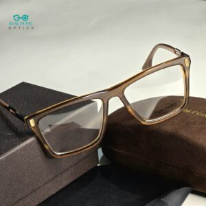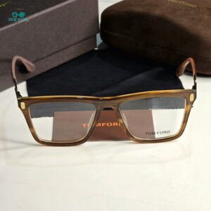 1. Elevate your style with the Luxurious Blade Tomfor Square Boxy Eyeware Unisex, featuring a sleek pair of glasses with brown, black frames that exude sophistication and elegance.