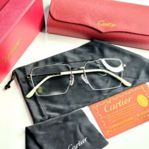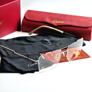 Introducing the exquisite Cartier Half Rim Full Metal Eyewear, a stunning addition to any eyewear collection that seamlessly blends luxury with functionality. This unisex design features a sophisticated half-rim construction, crafted from high-quality metal that ensures durability while providing a lightweight feel for all-day comfort. The eyeglasses are elegantly presented in a striking red box, symbolizing the brand’s commitment to opulence and style. The bold red lenses not only make a fashion statement but also offer a unique twist to traditional eyewear, allowing the wearer to express their individuality with confidence. Perfect for both casual and formal occasions, these Cartier eyeglasses are an essential accessory for those who appreciate the finer things in life, embodying the essence of timeless elegance and modern sophistication.