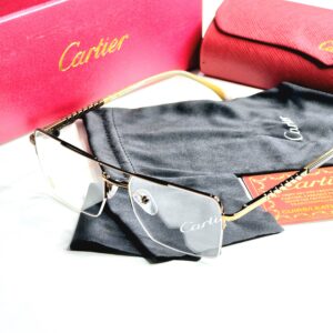 Introducing the exquisite Cartier Half Rim Full Metal Eyewear, a stunning addition to any eyewear collection that seamlessly blends luxury with functionality. This unisex design features a sophisticated half-rim construction, crafted from high-quality metal that ensures durability while providing a lightweight feel for all-day comfort. The eyeglasses are elegantly presented in a striking red box, symbolizing the brand’s commitment to opulence and style. The bold red lenses not only make a fashion statement but also offer a unique twist to traditional eyewear, allowing the wearer to express their individuality with confidence. Perfect for both casual and formal occasions, these Cartier eyeglasses are an essential accessory for those who appreciate the finer things in life, embodying the essence of timeless elegance and modern sophistication.